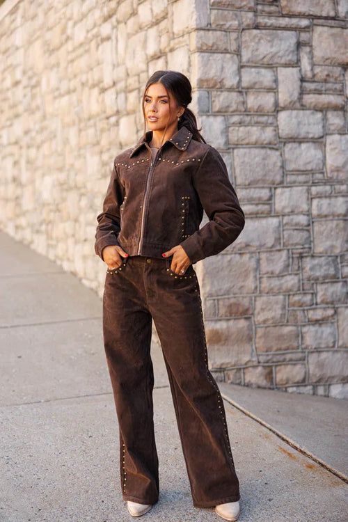 Latte Western Printed Wide Leg Pants -